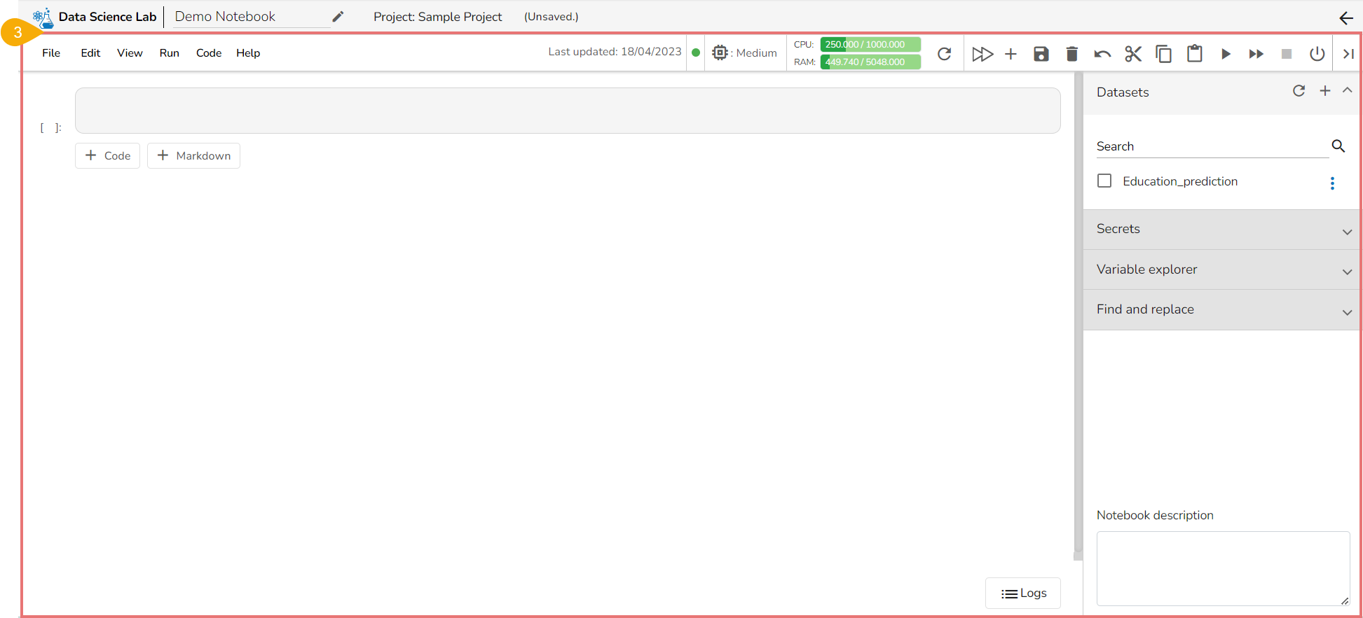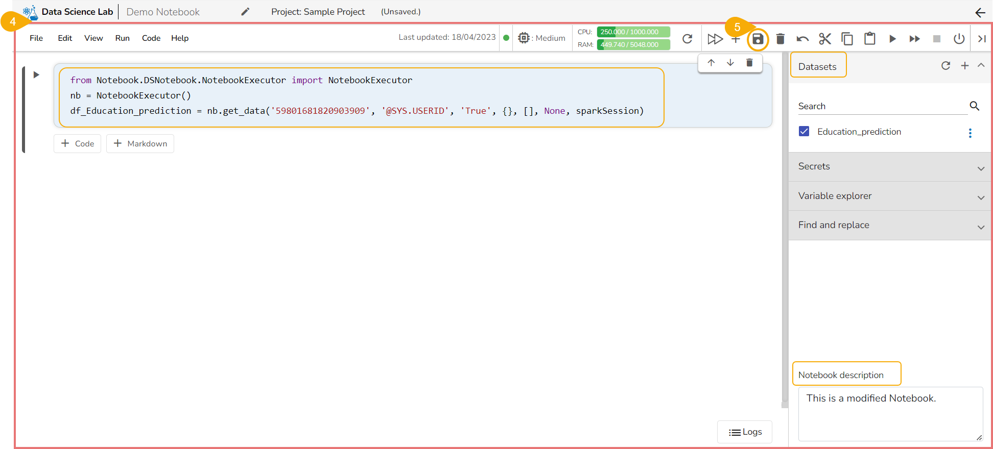 * Click the ***Save*** icon to save the Notebook changes.