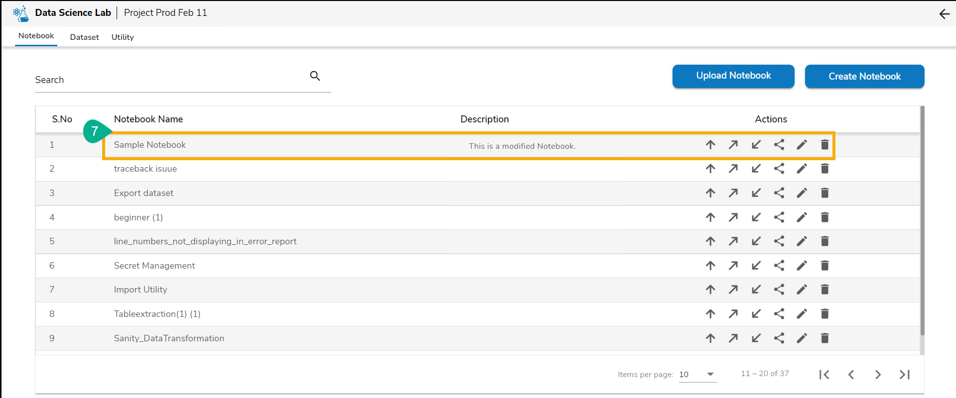 * Navigate back to the Notebook list, some of the Notebook level modifications can be observed in the Notebook list (E.g., Notebook name and Description).