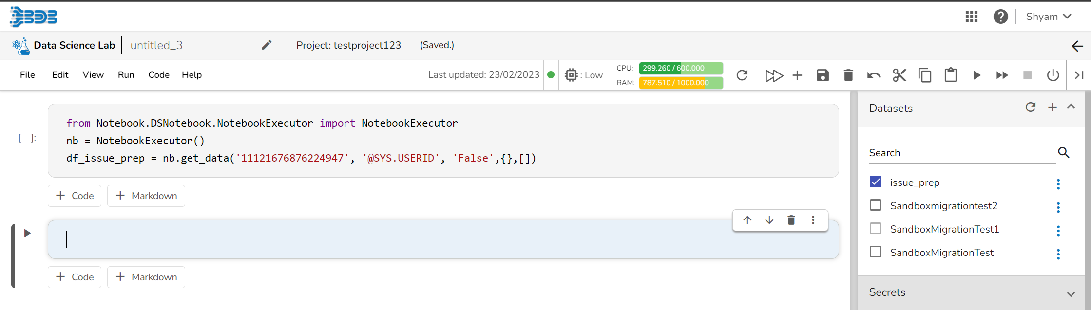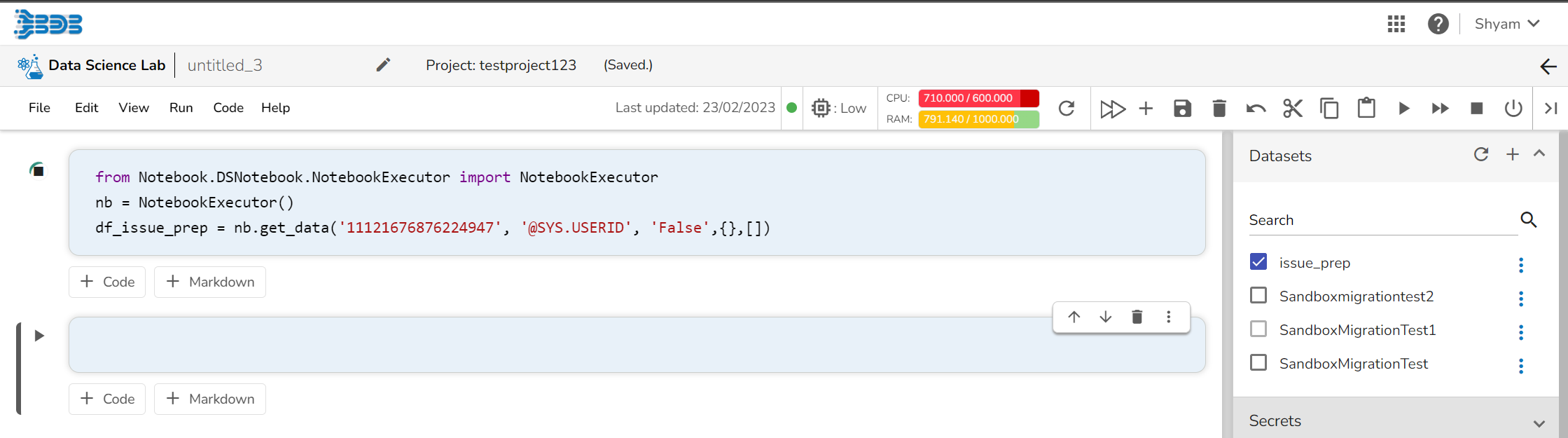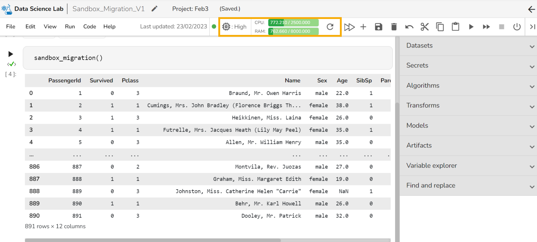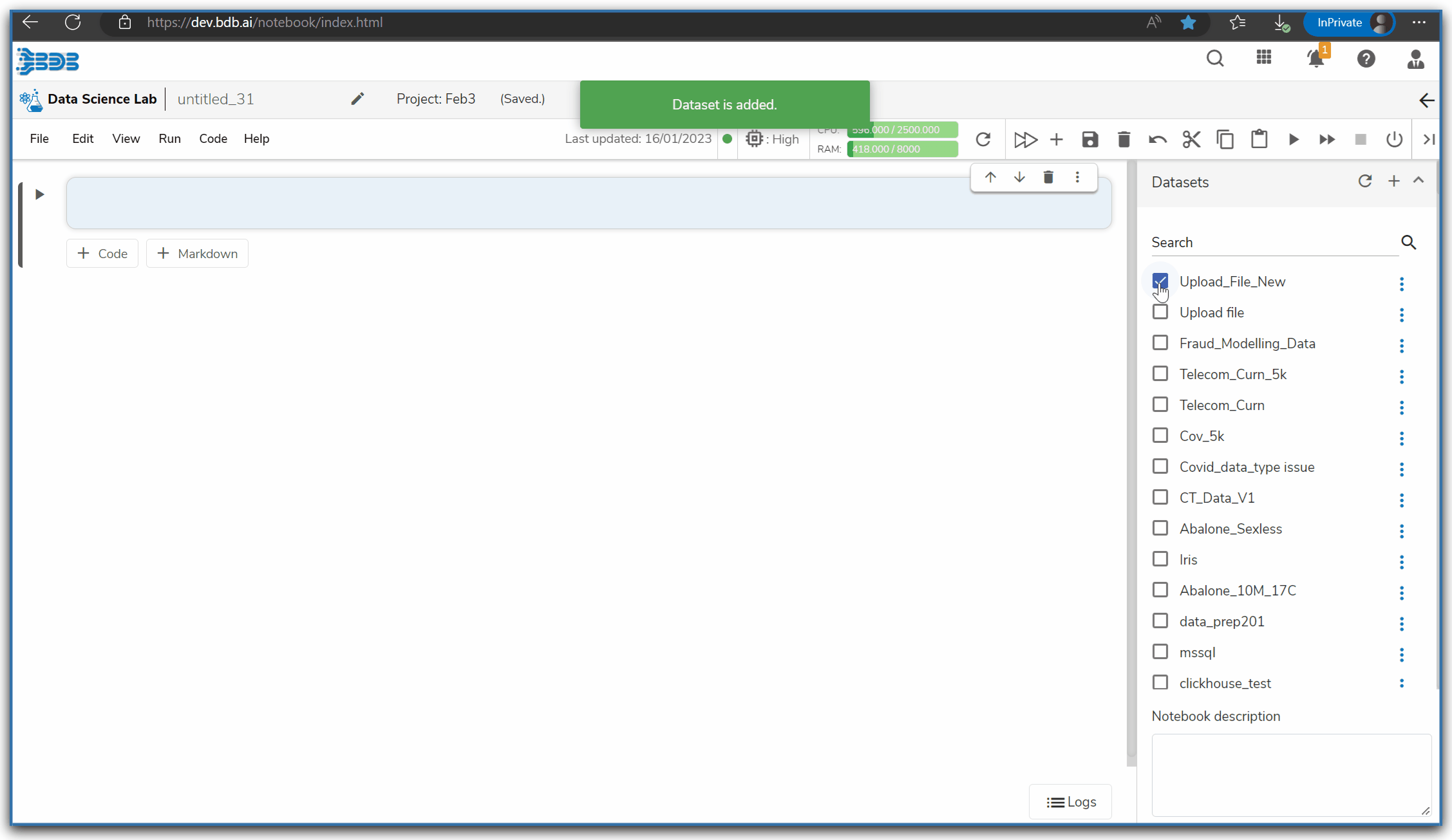 *<mark style="color:green;">Please Note:</mark> The graph displays requests and limits of CPU and Memory respectively. The values will be calculated and previewed in the UI after each cell execution.*