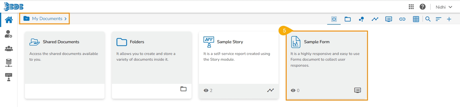 The users can publish the forms created by them to the BDB Platform. The published forms can be accessed on the BDB Platform homepage under the My Documents section.