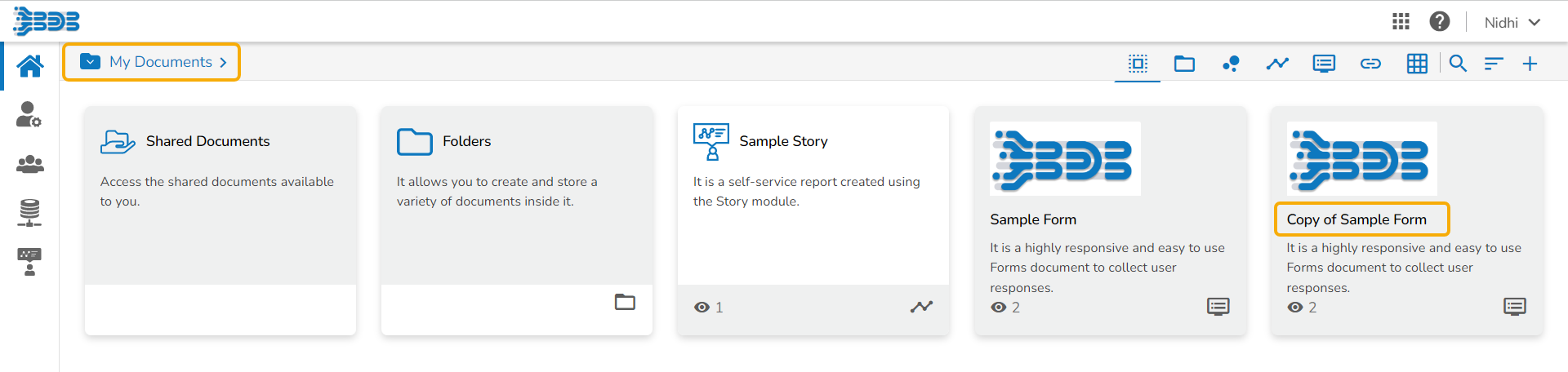 E.g., A form named Sample Form 1 gets a new name, Copy of Sample Form as shown in the following image: