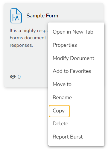 E.g., A form named Sample Form 1 gets a new name, Copy of Sample Form as shown in the following image: