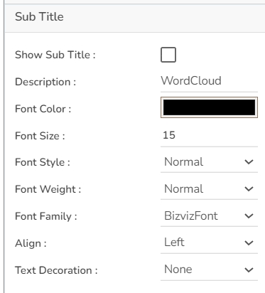 The user can insert or modify the inserted (default) Title text (description), Font color, size, style, etc. The user can also enable or disable the Title box or title text using this properties option. By enabling the Show Dataset Description option the Title will get added from the mapped dataset.