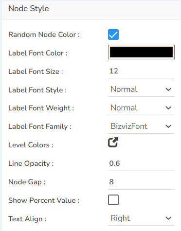 The user can enable and select various Node specific properties for the Sankey chart by using the Node Style properties fields.