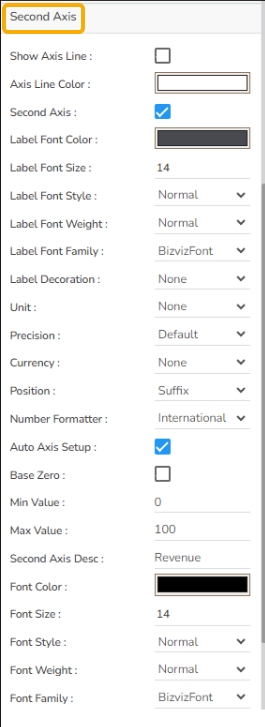 The users can enable the Second Axis if they want to show any serial value according to the second axis. The users can now set Label related properties using the Second Axis properties fields.