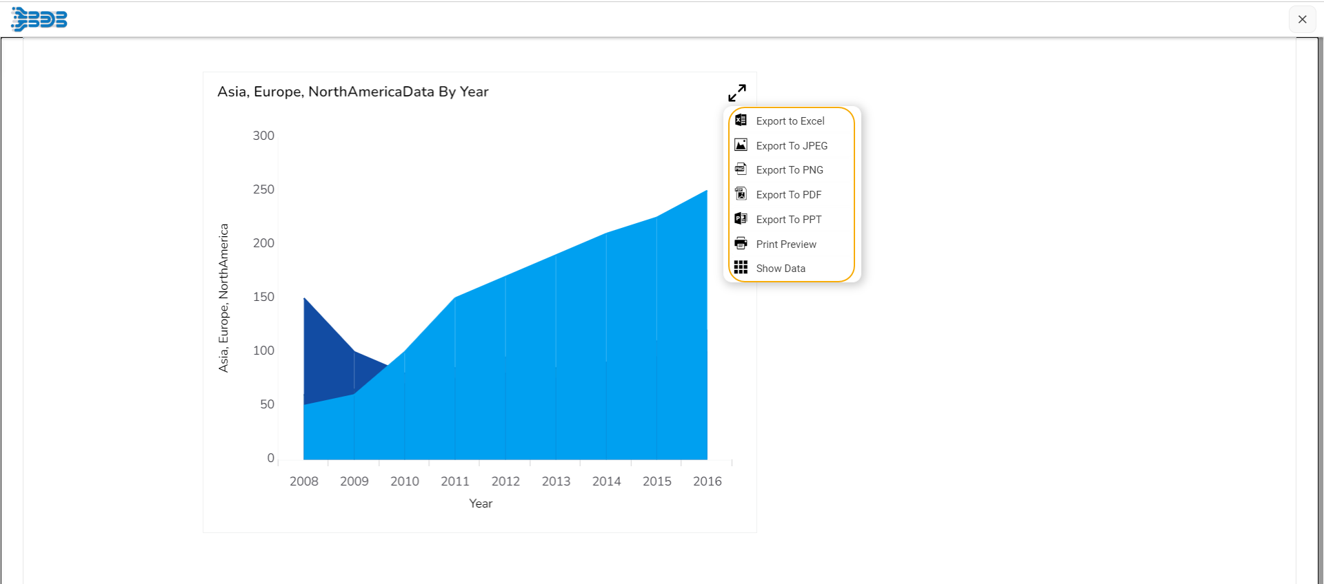 By enabling the Enable Context Menu the user gets a context menu with various export options to download the report in the Preview mode.