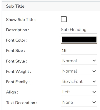 The users can also set the display alignment of the Subtitle and select any text decoration option from the given drop-down menu.