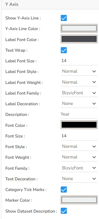 The user can change the axis name, Font color, Font size; enable the axis line, and changed the axis color of the Y Axis.