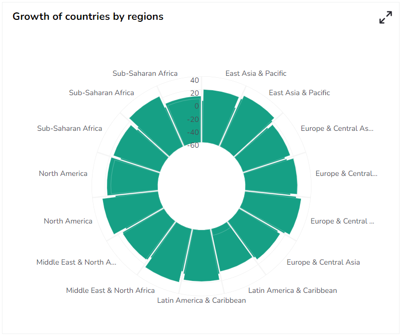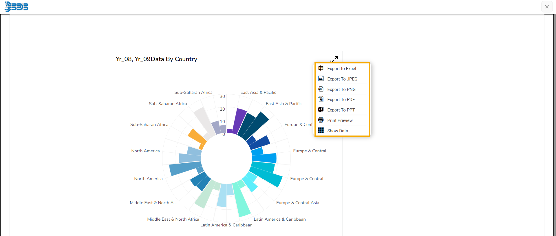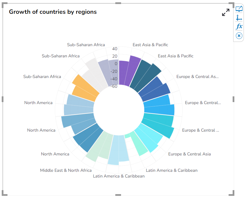* Use the ***Country*** column as ***Category*** field, use ***Region*** as ***Sub Category*** and the other columns as ***Series** to plot data.*