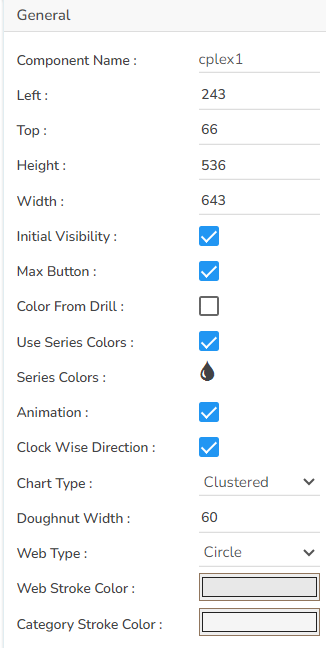 * The user can change the height, width, top, and left values, chart type, column type, Line form. In this case, the user has changed the ***Chart Type*** to ***Clustered*** and the ***Web Type***  to Circle.