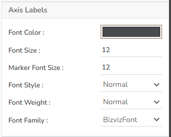 The user can select or change the Font color, font style, weight, and family of the Axis labels using this properties option.