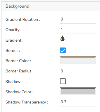 The user can modify the Gradient related properties such as Gradient Rotation, Opacity, Gradient color using these properties fields.