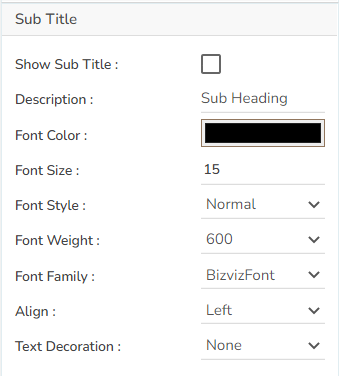 The user can enable the subtitle if we have any second title and also, we can change the Name, Font color, size, style, etc.
