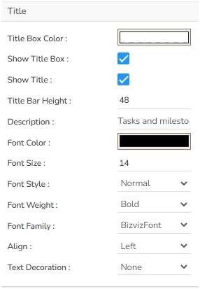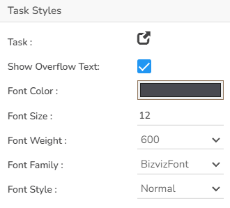 The user can change the task box color, can enable the text Overflow task font color, size.