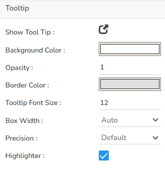 The user can change the background color of the chart, get the border for the chart, and change the border color. The user can get the reflection of the chart by enabling the shadow option to change the color and increase or decrease the transparency of the shadow.