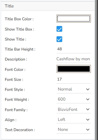 The user can get the reflection of the chart by enabling the shadow option can also change the color and increase & decrease the transparency of the shadow. The user can also change the background color, adjust its transparency as well as enable a border and change its color.