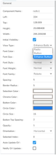 Orientation can be changed between horizontal or vertical. Also enable Notify GV update so that whatever value user update/click in the button, its value gets updated in the connection.