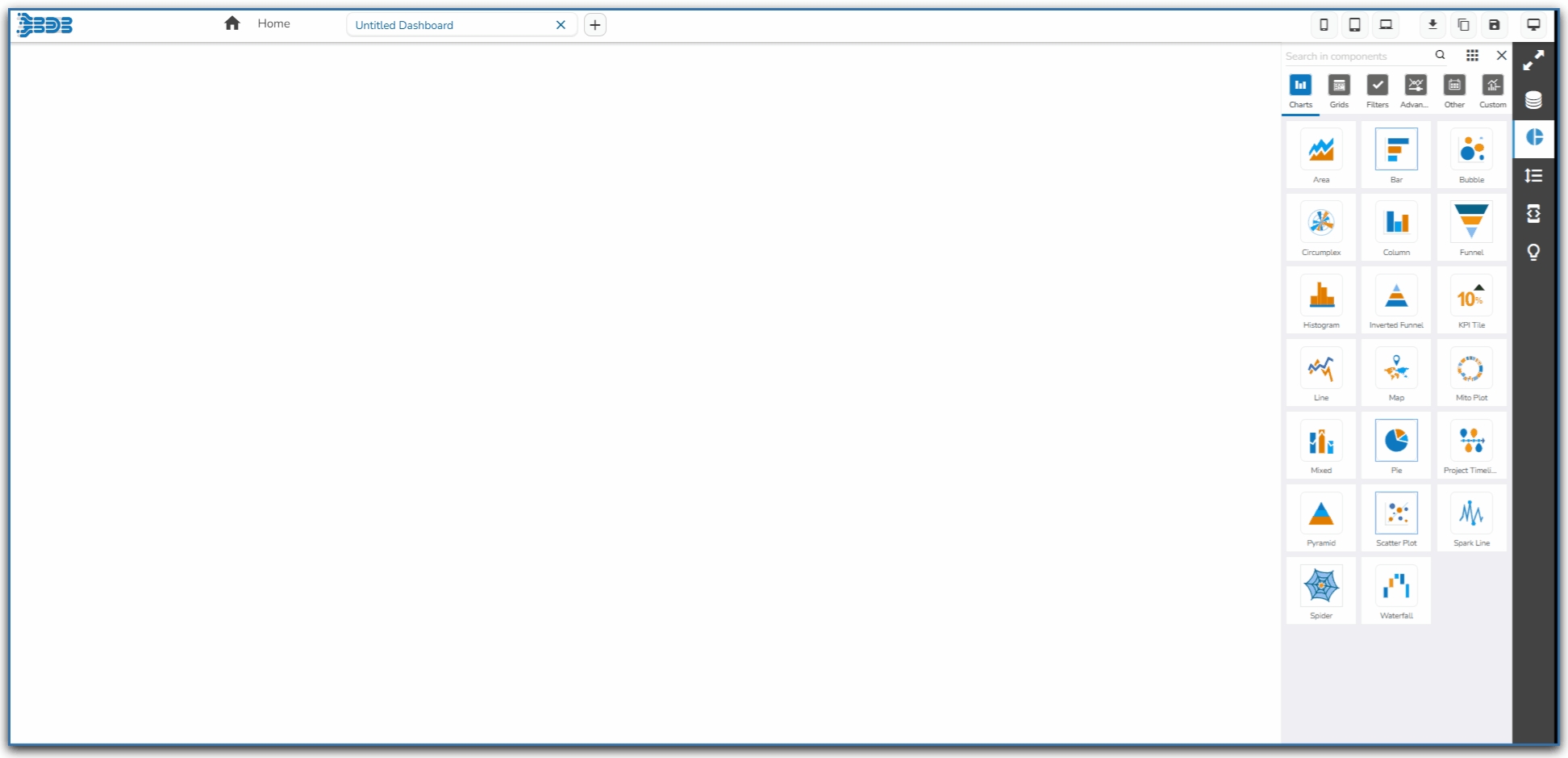 Click on the Manage Dashboard Components option provided in the right side panel of the Dashboard canvas.