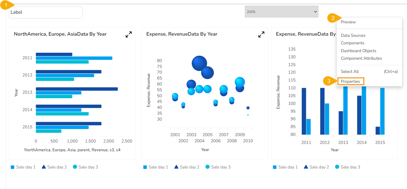 * The ***Dashboard Properties*** gets listed in a context menu.