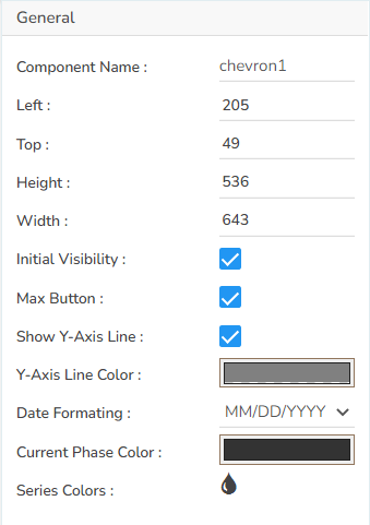 The user can change the height, width, top, left, chart type, column type & Line form. In this case we have only Chevron chart.
