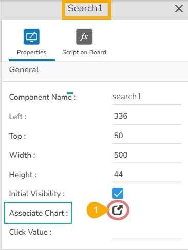 - Click the Associate Chart icon  from the General Properties of the Search component. from the General Properties of the Search component.