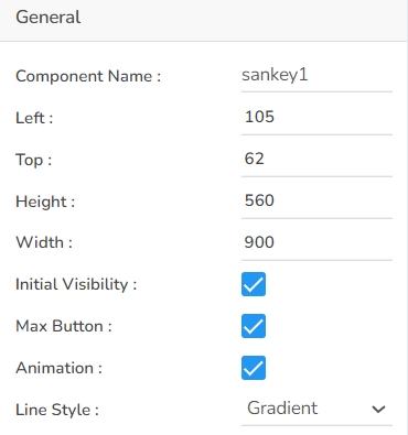 The user can enable and select various Node specific properties for the Sankey chart by using the Node Style properties fields.