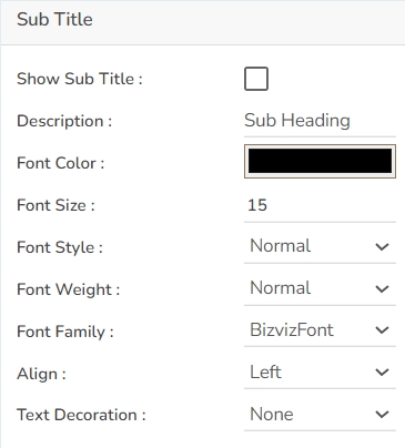 The user can enable the subtitle to display the second title. The user can change the Name, Font color, size, style for the subtitle.