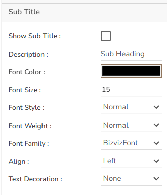 These properties fields will help to enable or disable the Subtitle, Provide description if it has been enabled and set the font related properties for the same.