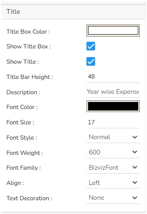 - The user can enable or disable the Title Box and Title by using this properties field.