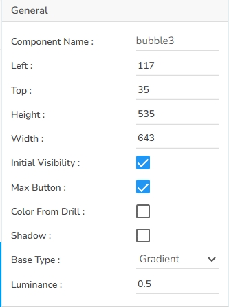 - The General properties also provides options to select Base Type and and Luminance value for the Bubble chart.