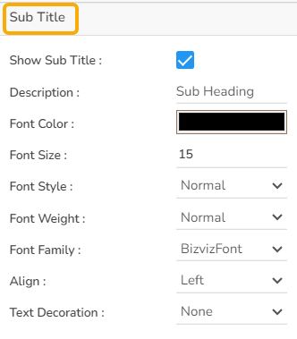 The users can also set the display alignment of the Subtitle and select any text decoration option from the given drop-down menu.