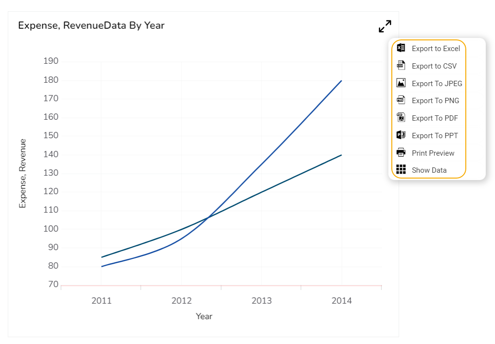 By enabling the Enable Context Menu the user gets a context menu with various export options to download the report in the Preview mode.