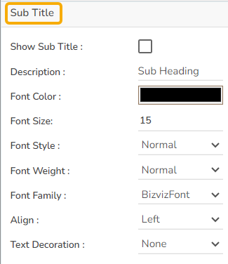 The users can also set the display alignment of the Subtitle and select any text decoration option from the given drop-down menu.