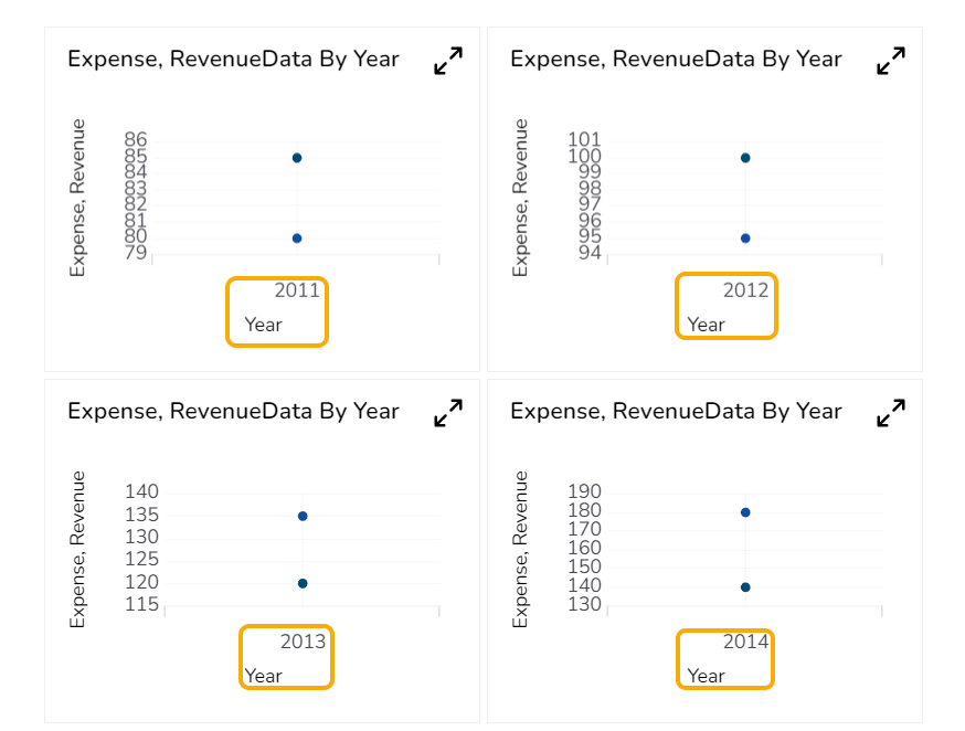 These Properties will work when the users have a category field and that category value should display in a different chart. For Example: If we have a Year for each year, it will generate a different chart.