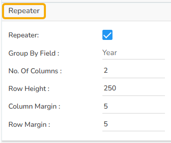 The user need to enabled the Repeater option using the Repeater section provided in the chart Properties.