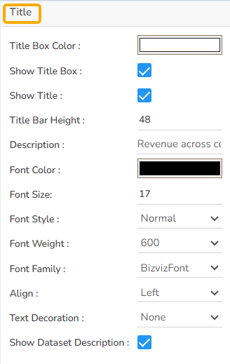 The user can change Title Name, Font color, Font size, Font style, etc.
