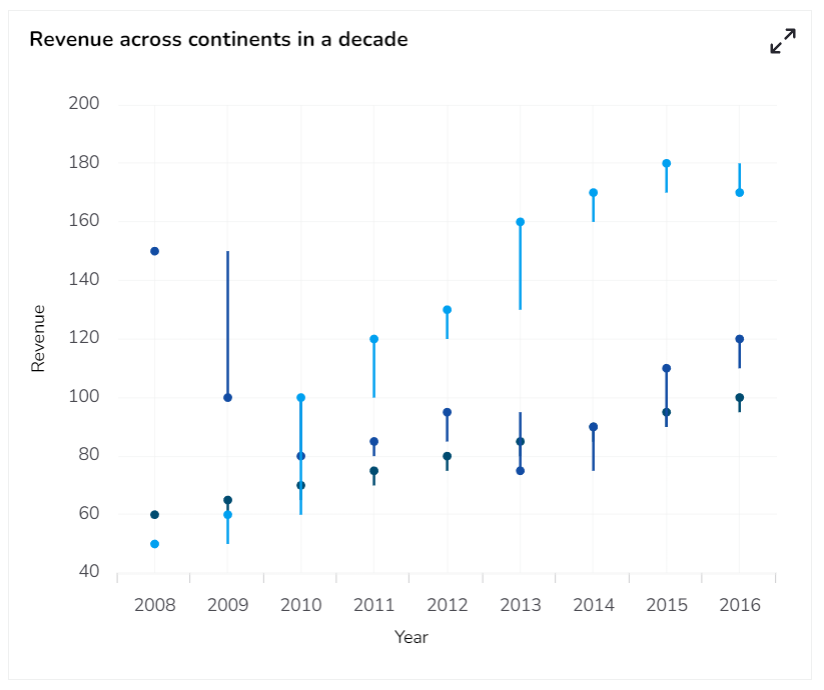 The chart gets displayed grouped by the selected field. In this case, the selected field is Year. Thus, the chart displays year wise data separately.