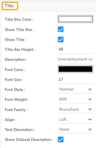 The user can change Title Description, Font color, Font size, Font style, Font Weight and Font Family.
