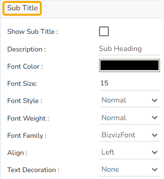 These properties fields will help to enable or disable the Subtitle, Provide description if it has been enabled and set the font related properties for the same.