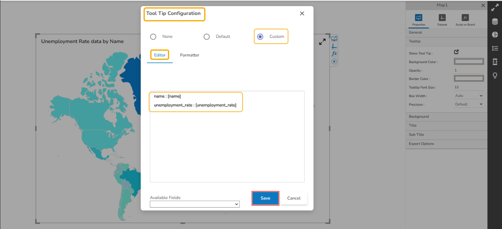 The Customized tooltip appears for the Map chart.