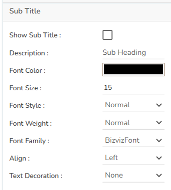 The user can enable the subtitle if the user has any second title and also change the name, font color, font size, font style, etc.