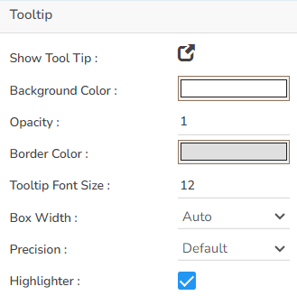 The user can change the background color of the chart, get the border for the chart, and change the border color. The user can get the reflection of the chart by enabling the shadow option to change the color and increase or decrease the transparency of the shadow.