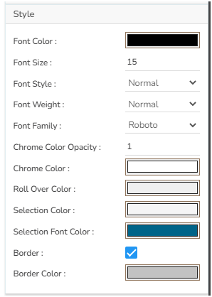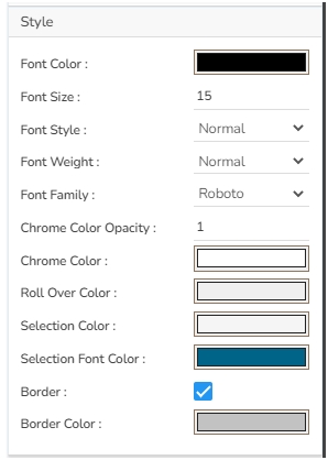 If user set a Rollover Color, then when they move from one cell to another, they can see those cells in that color. Selection color highlights our selected cells. Also, user can adjust the font and border properties.