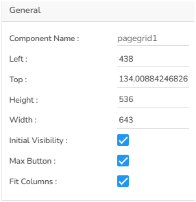 The user can avail horizontal scroll for the Paging grid component, if the Fit Columns field is disabled from the General Properties of the component.