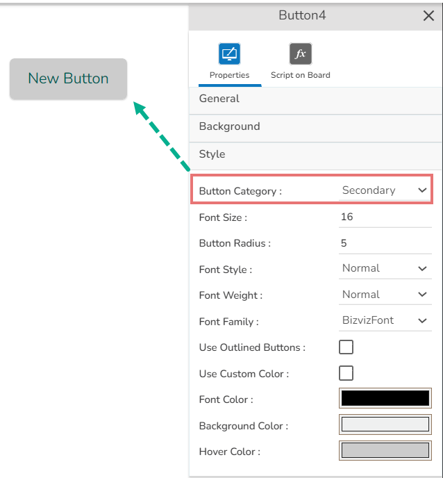 E.g., Button Category is set as Secondary in the below given image: