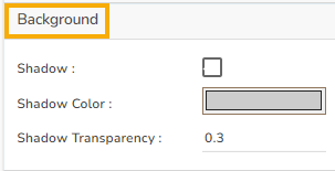 User can enable Shadow, Shadow Color, and Shadow Transparency by using the Background properties.