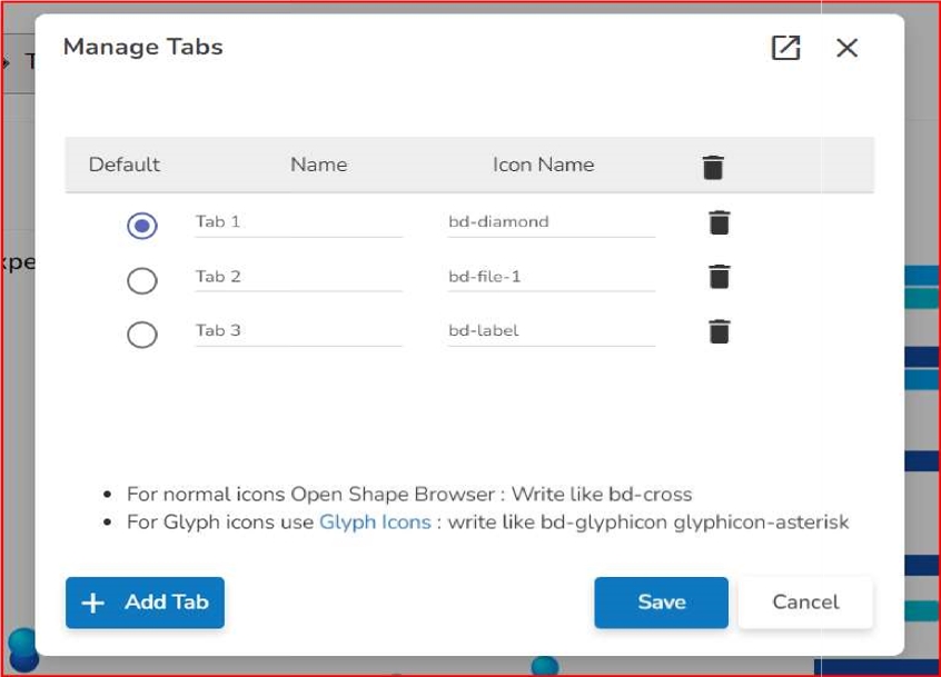 Change Tab names (if required) and reference image/icon names as per requirement.
