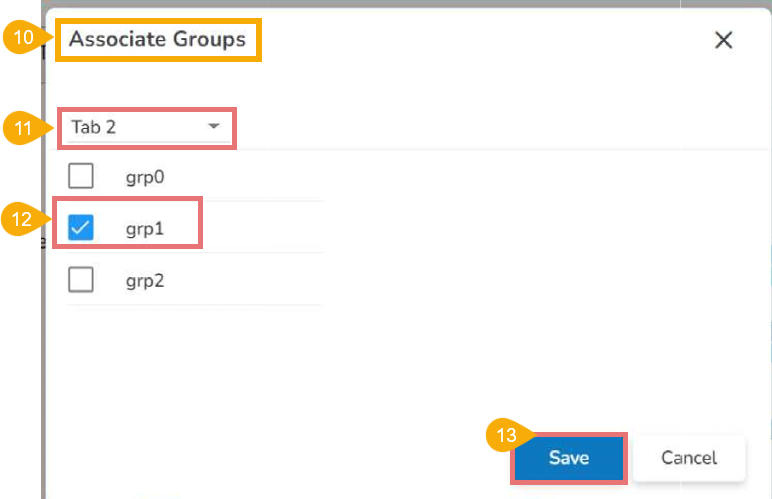 Steps to associate the group with tabs: