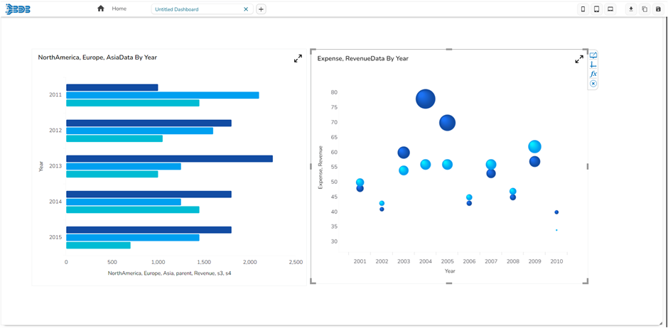 Drag & drop Bar & Bubble chart into canvas and assign data to it.
