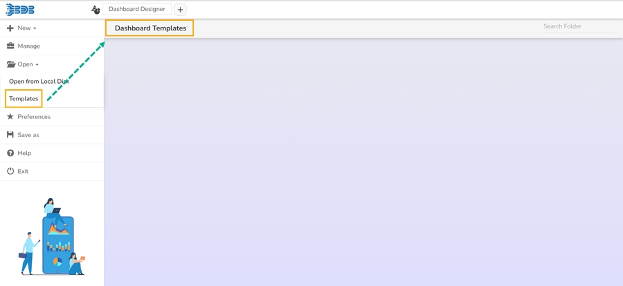 The selected dashboard (.bvzx file) opens inside the designer workspace.